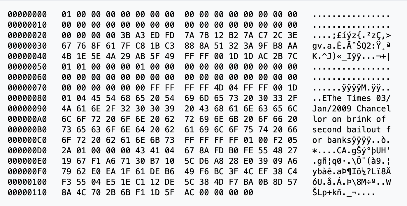 Embedded within this block was a text excerpt from The Times: “The Times 03/Jan/2009 Chancellor on brink of second bailout for banks.” This inclusion was both a timestamp and a critique of the traditional financial system, stressing Bitcoin’s goal of decentralizing money.