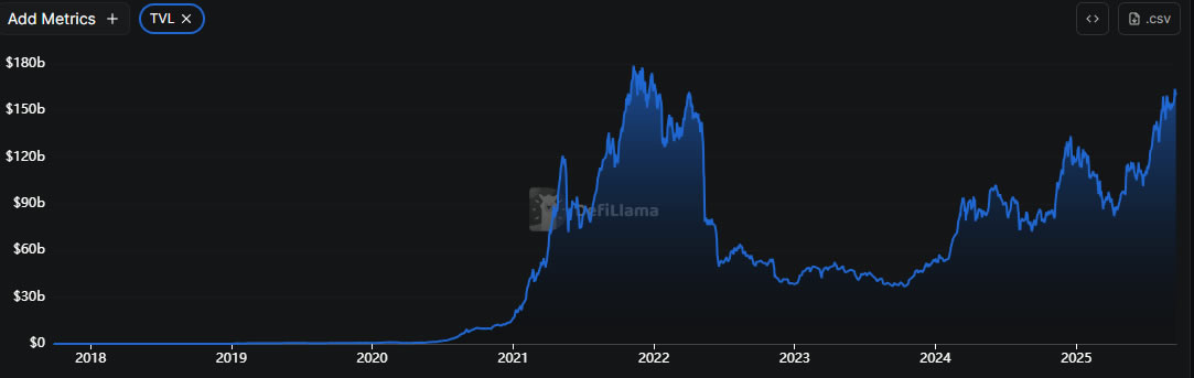 DeFi TVL approaches ATH but remains small overall. Source: DeFilLama