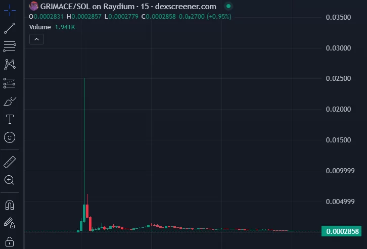 The GRIMACE price experienced a huge increase and reached $0.0250, but after the hack was realized, the price crashed at the same speed.
