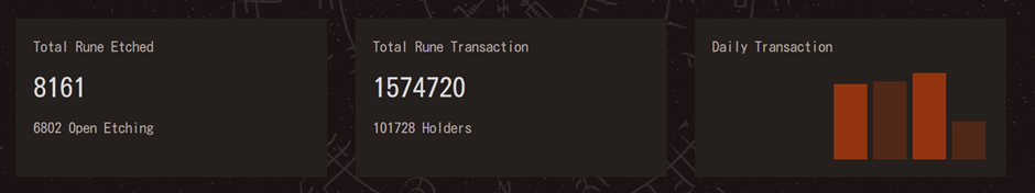 At the press time, the total number of Runes etched is 8161. The total Rune transaction till the moment is 1574720 by 101728 holders.