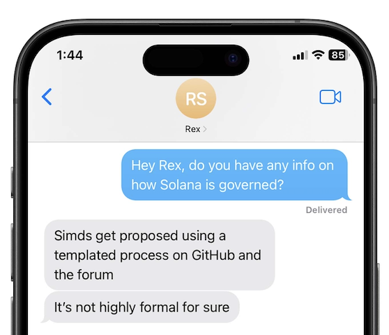 When Trent doesn’t say no, the process works something like this: Someone proposes a Solana Improvement Document (SIMD), then validators vote using voting tokens based on their share of staked solana. If the vote passes, client developers implement and create the change.