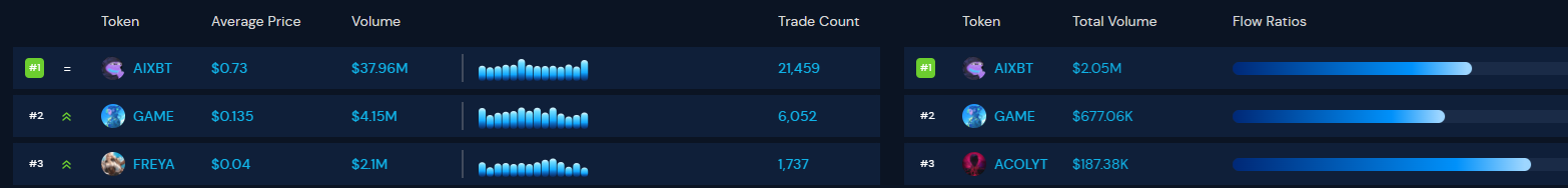 AI agents lost their position as the peak crypto narrative, where all tokens are seeing inflows of buyers. Instead, traders are looking for the most promising tickers, as agents fight for mindshare on social media and markets. As of January 22, AIXBT established itself with highly active trading and a robust social media presence based on its market analysis content.