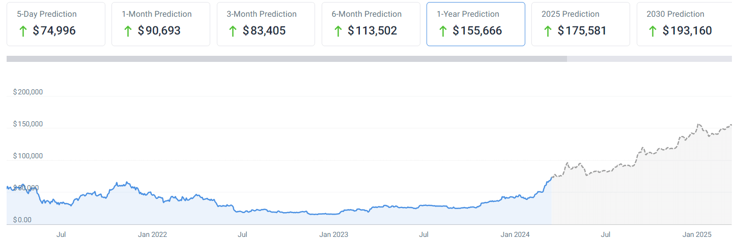 So, what does AI say about Bitcoin? According to some price forecasting algorithms, the maiden crypto asset will continue to grow its value throughout 2024 and towards its end, reaching a whopping $149,145 on December 31, 2024, as per data on March 13.