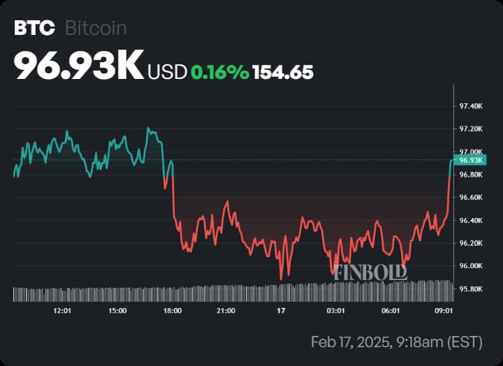 As Bitcoin struggles to break free from its current range, Finbold’s AI-powered prediction tool has provided an updated outlook for its trajectory leading up to March 1, 2025. Factoring in technical indicators and market data, the model forecasts an average BTC price of $96,256 for the start of next month, a 0.07% decline from its current level of $96,323.