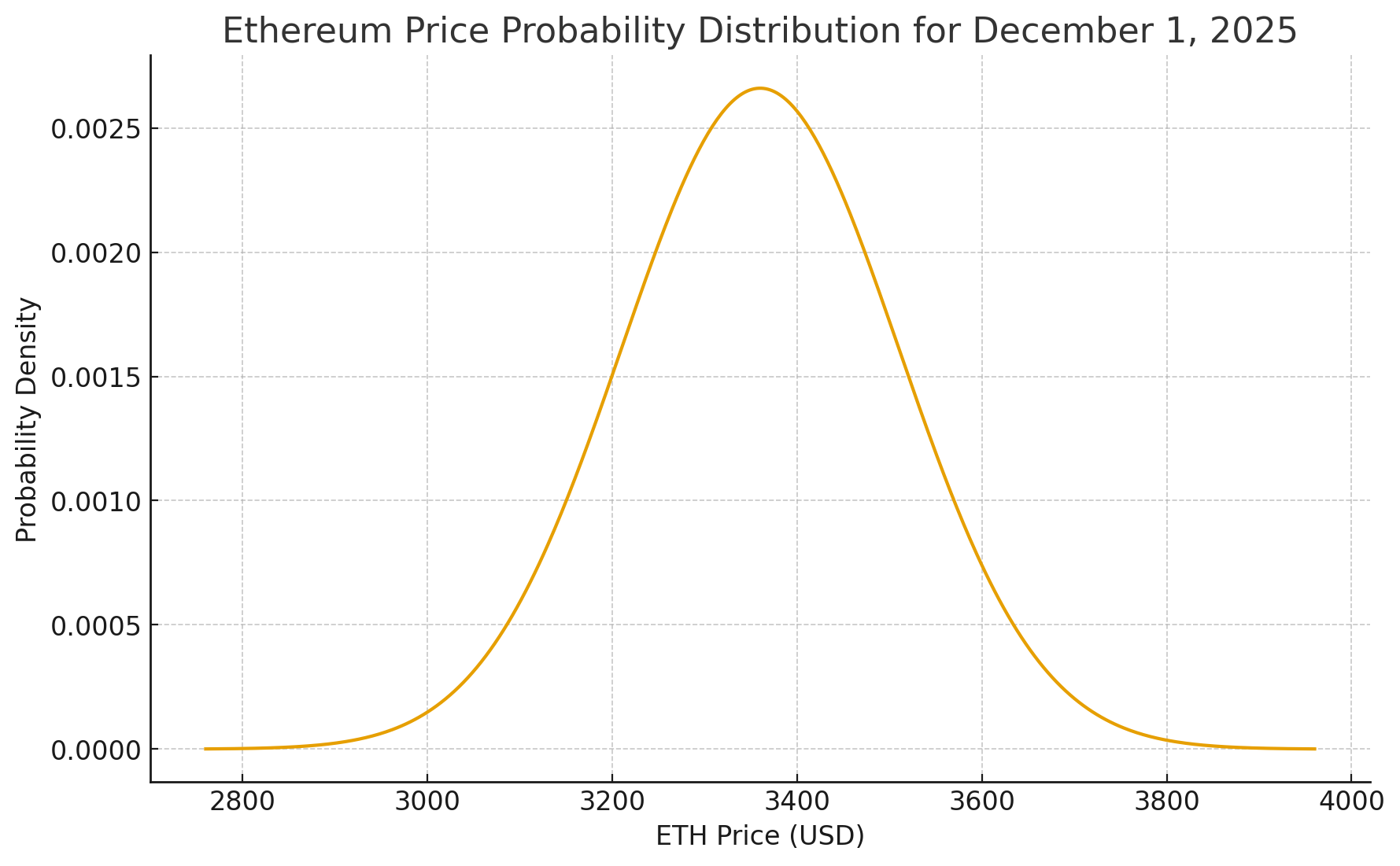 Weighing the current spot level near $3,000, the strong underlying support, and the cautiously improving sentiment backdrop, ChatGPT’s estimate places Ethereum’s most probable landing zone on December 1 at approximately $3,360.