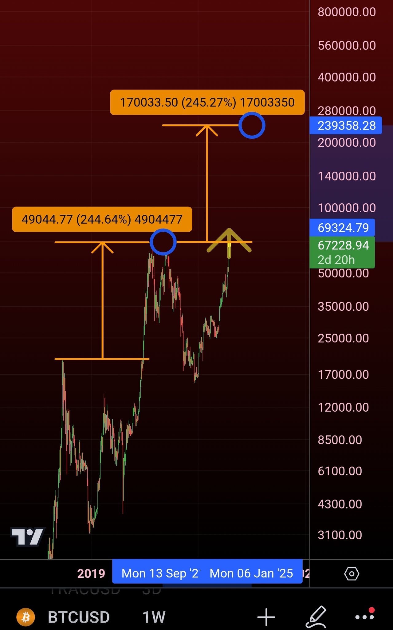 As a result of the trend, the crypto expert has set his price target at $240,000 in the upcoming months. This simply means BTC needs to surpass the aforementioned price in order to be able to demolish the diminishing returns narrative.