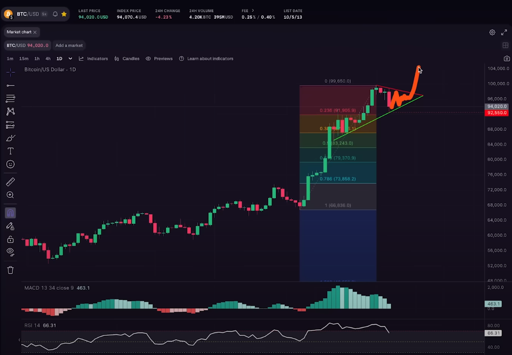 Bitcoin is trading at $93,402 at time of writing, down by around 9% from the all-time high price of $99,645 reached on November 22nd.