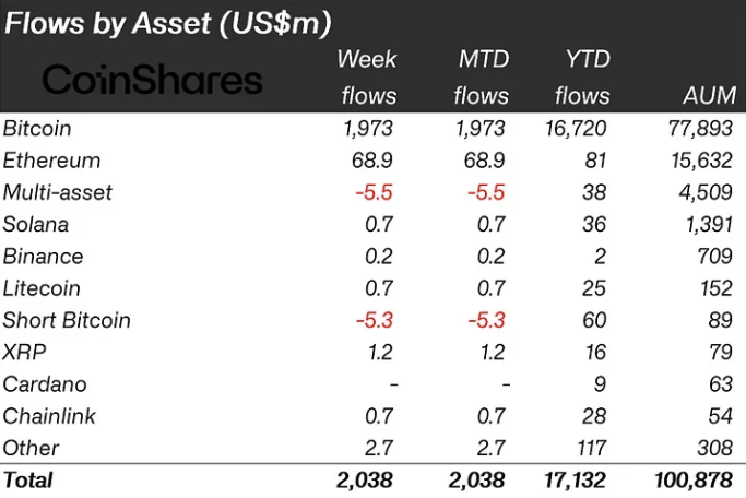 Crypto Investment Flows. Source: CoinShares