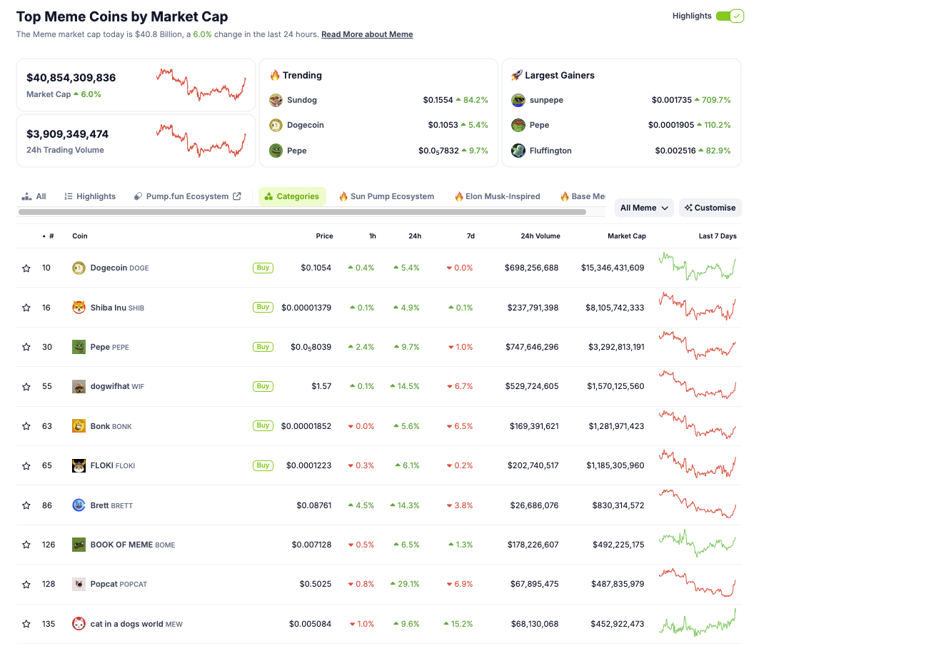 The meme coin market recently showed signs of revival, with an overall market capitalization increase of 6% in just 24 hours, now totaling approximately $40.85 billion.