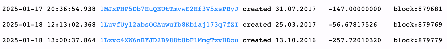 Sleeping bitcoin spent from wallets created in 2017 and 2016.