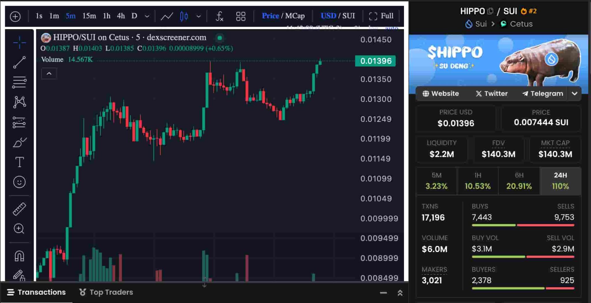 By the time of the original post, the meme coin was trading at $0.012, with 133.9 million HIPPO behind, worth approximately $1.7 million. However, the HIPPO/SUI pair on Cetus’s decentralized exchange is already up, touching the price resistance at nearly $0.014.