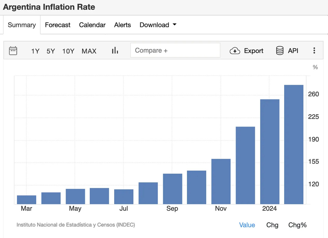 The Argentine Republic is currently experiencing the worst inflation rates in the world. The nation’s economy has experienced low levels of inflation, somewhere around 25%, for decades; yet the pandemic sharpened a downward trend to devastating effect. The inflation rate hit 70% in 2022 and reached 100% the following February, but 2023 proved to be an absolutely murderous year for Argentina’s economy. Inflation rates crossed the 200% point around the time that Bitcoin-friendly president Javier Milei first took office in December, and the rate currently sits at a mind-boggling 274%. With figures like this, ordinary citizens’ wages and life savings have evaporated practically overnight, and people are looking towards more radical solutions to get their lives on track.