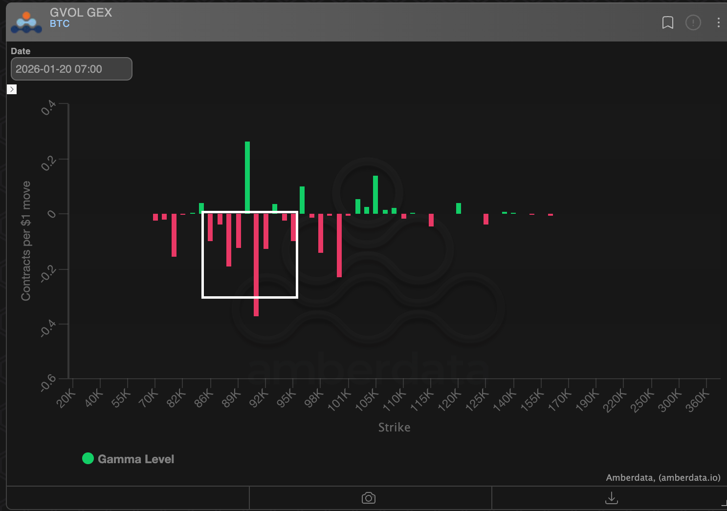 - The gamma exposure is positive at the $90,000 level, which could see market makers do the opposite, arresting volatility.