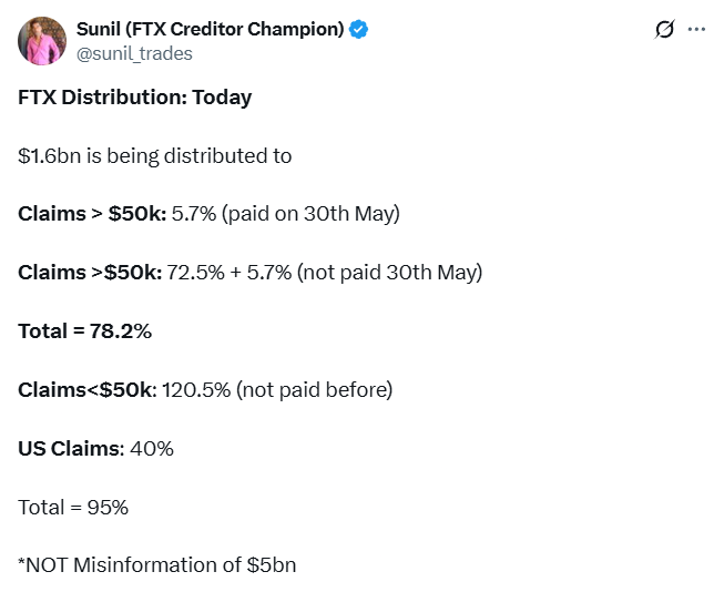 On Sept. 30, FTX distributed its third set of repayments worth $1.6 billion to its users, according to Sunil, FTX creditor and Customer Ad-Hoc Committee member, in an X post.