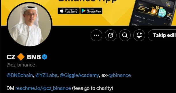 The ReachMe link that CZ added to the bio section of his X account.
