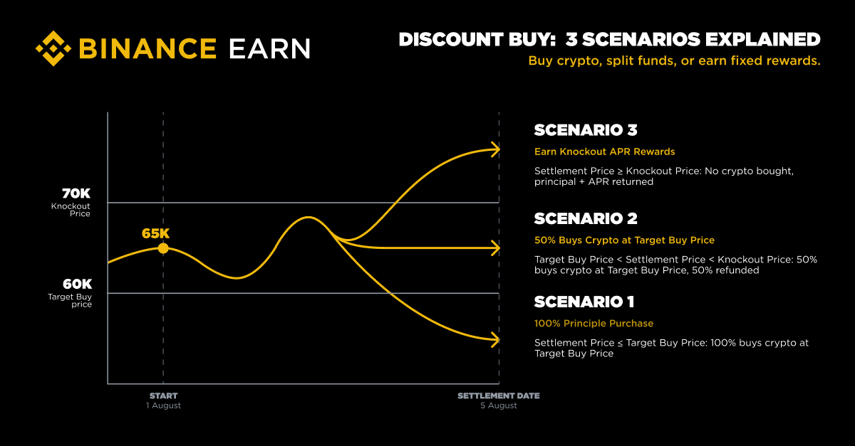 Binance has launched Discount Buy, a structured product that allows users to set target prices below current market rates for future crypto purchases or earn fixed APR rewards if the purchase isn’t executed, according to the information shared with Finbold on July 29.
