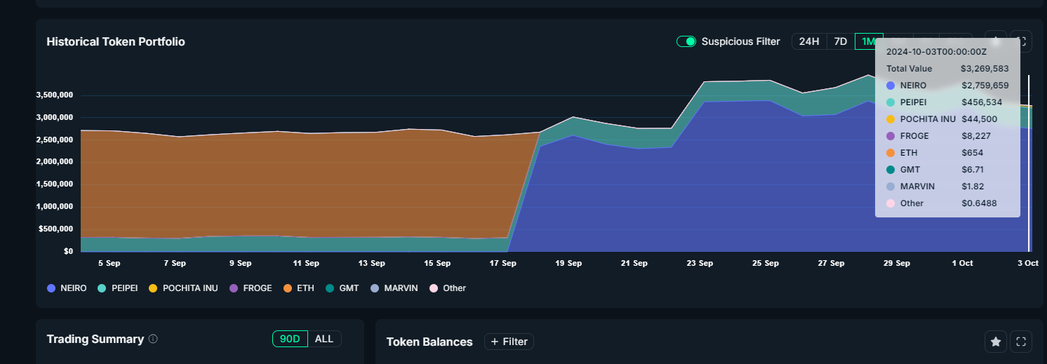 One of the top wallets has been accumulating NEIRO and PEIPEI since September 17. | Source: Nansen