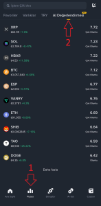 To access the AI function on Binance TR, go to the Markets section in the Binance TR mobile application and then navigate to the “AI Evaluation” section from the top tabs. The image below shows how to access this function.