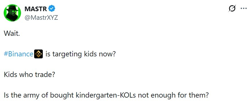 One X user criticized Binance for “targeting” kids, questioning whether the industry’s existing youth-focused marketing efforts were not already enough.