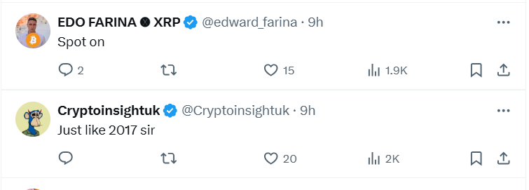 However, others have expressed disagreement with this perspective. “That’s not happening. Sorry to burst that bubble, Ben,” said X user Erik Huisman. Huisman went on to suggest that BitBoy is merely giving his followers false hope about a substantial XRP price gain.