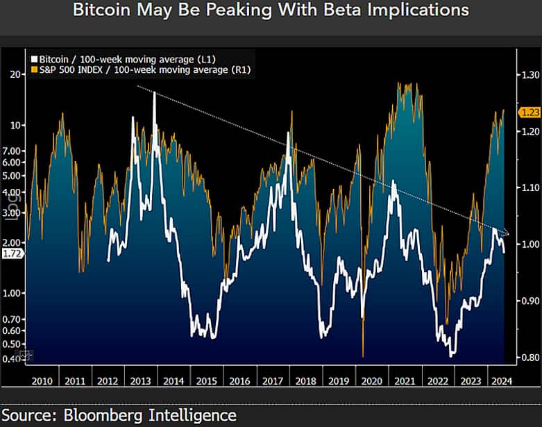 Notably, the Senior Commodity Strategist at Bloomberg Intelligence, Mike McGlone, spotted the divergence between both 100-week moving averages (MA). McGlone shared the discovery in a post on X on July 2, hinting at it being a leading indicator.