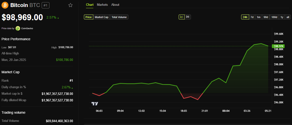 Bitcoin, which is edging toward $100,000, is especially exposed as it remains tethered to global risk sentiment.
