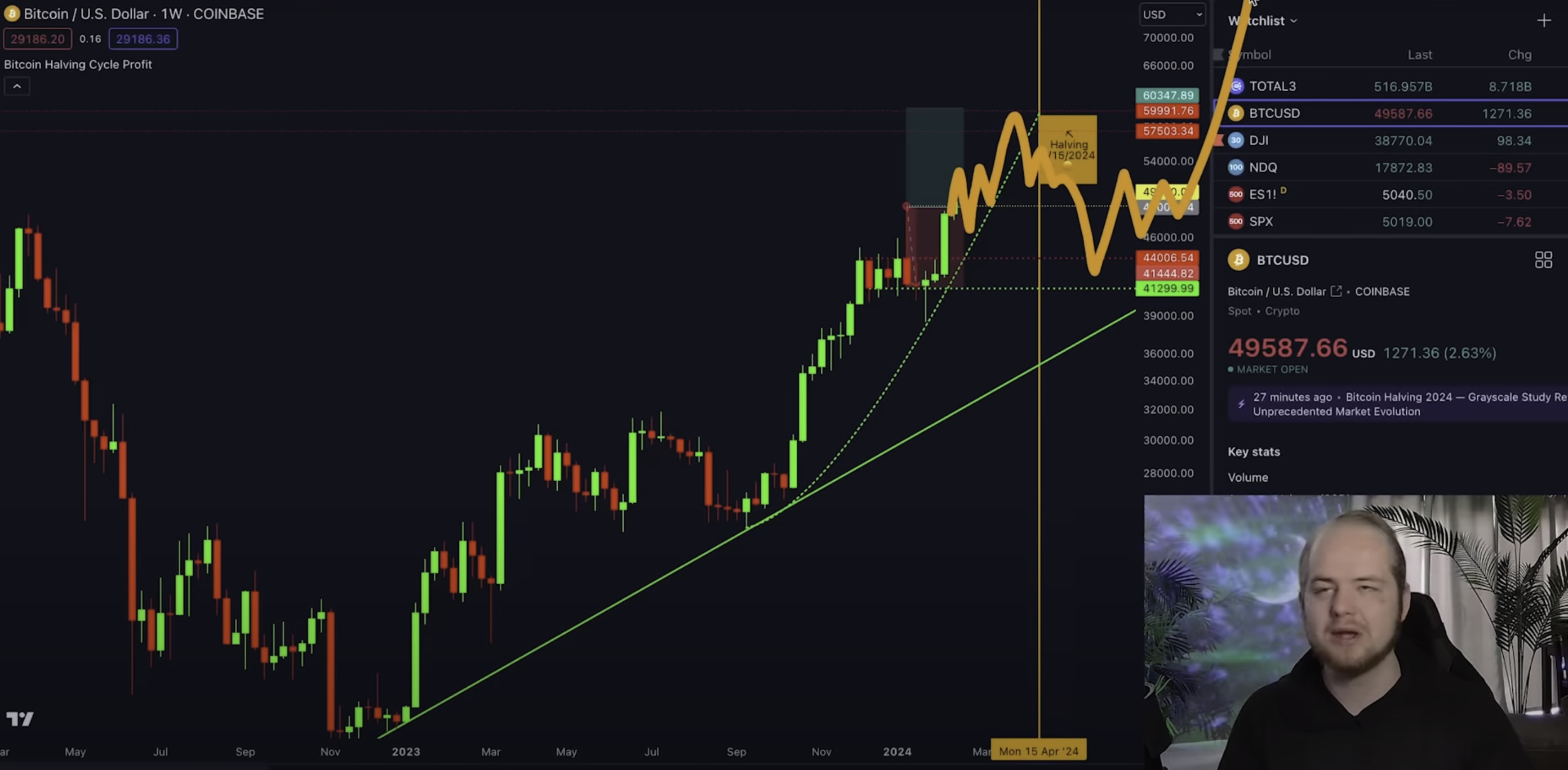 In a new strategy session, the trader tells his 72,000 YouTube subscribers that the flagship digital asset’s upward momentum could take it to $60,000 before the April halving event, when miners’ rewards are cut in half.