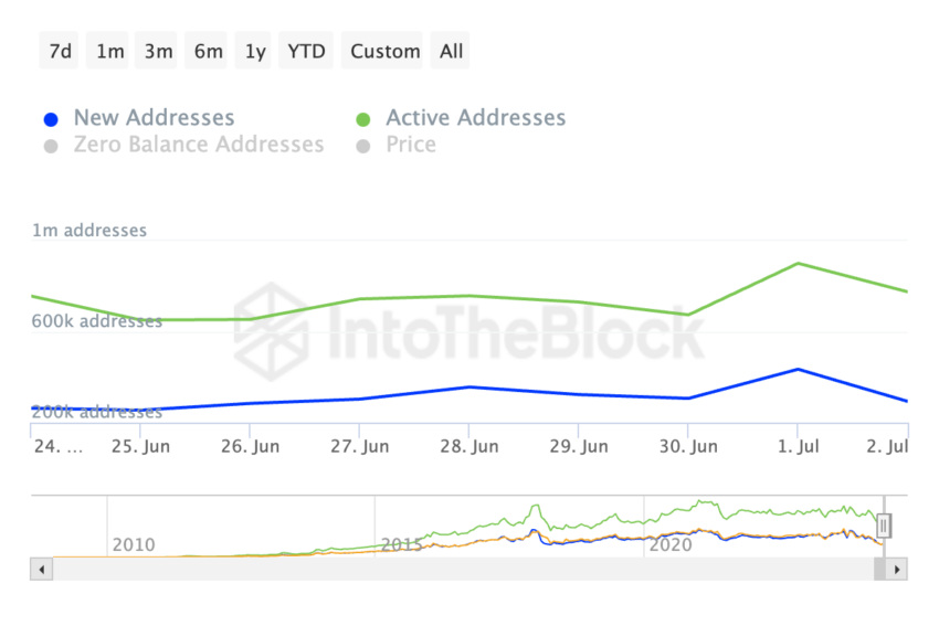 Bitcoin Daily Active Addresses. Source: IntoTheBlock