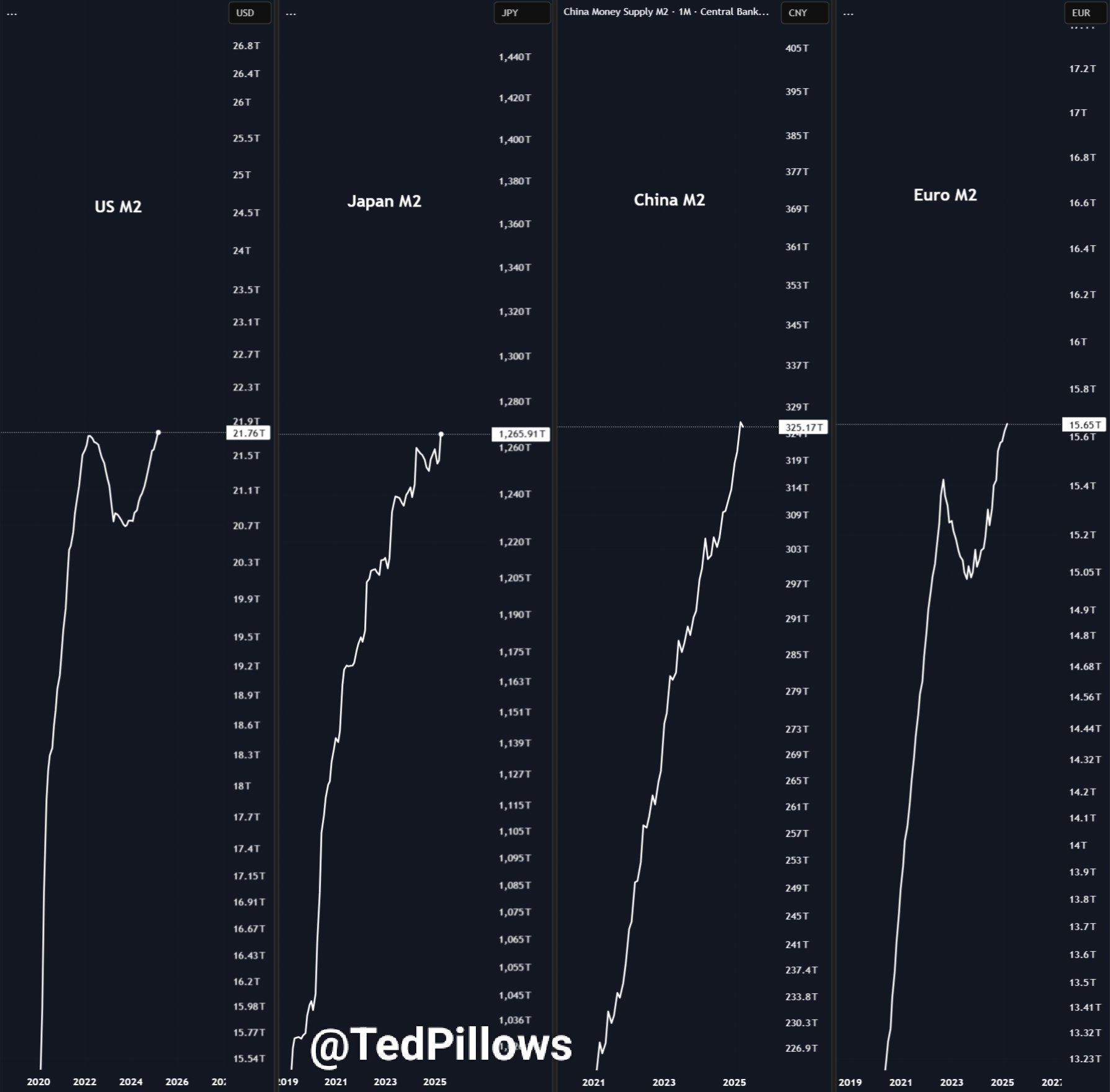 In a recent post, Analyst Ted Pillows revealed that the M2 money supply in major economies has reached record highs. He noted that the US dollar could follow suit. Due to the significant correlation between M2 and BTC, the coin might also reclaim its ATH soon.
