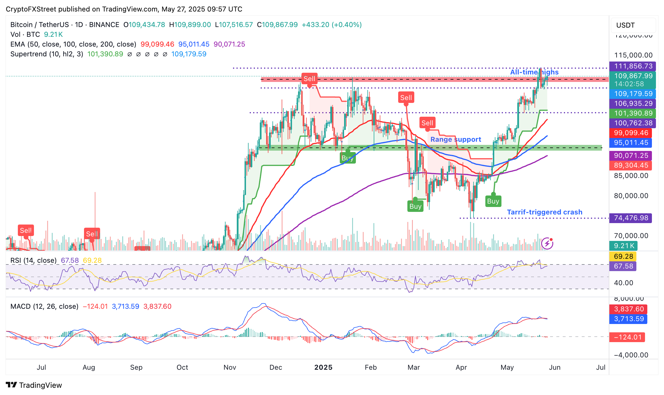 Bitcoin’s price continues to trade close to its all-time highs despite the resistance at $110,000. The elevated price is supported by strong institutional interest and macroeconomic uncertainty, especially in the US, after Moody’s and the International Monetary Fund (IMF) sounded alarms on the country’s debt sustainability. Investors seem to be flocking to Bitcoin to hedge the rise in Treasury yields.