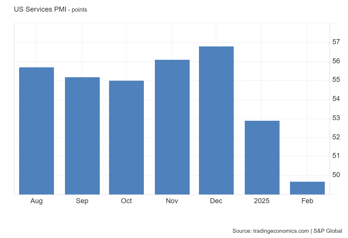 (U.S. Services PMI dipped in February / tradingeconomics.com)