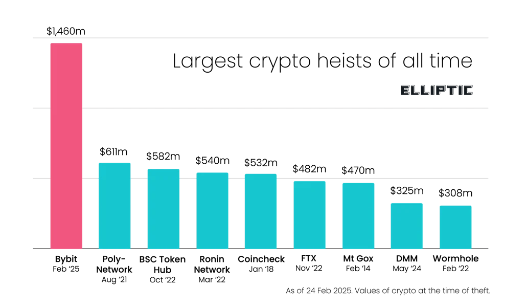 (Bybit hack compared to previous hacks / elliptic.co)