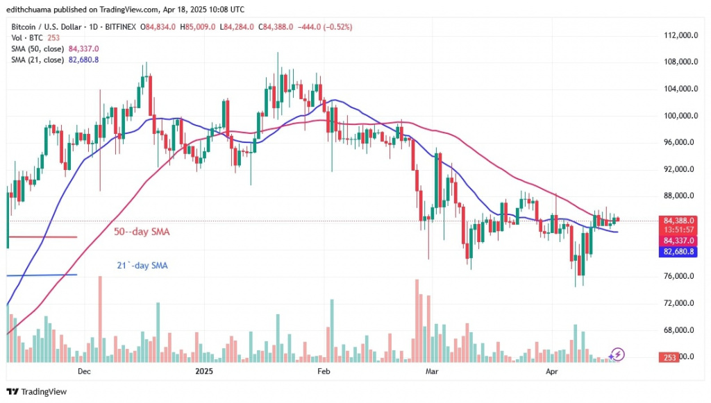 Bitcoin has been trading sideways since the rally that ended on April 12, as reported by Coinidol.com. Bitcoin traded below the $86,000 mark last week, but above the moving average lines.