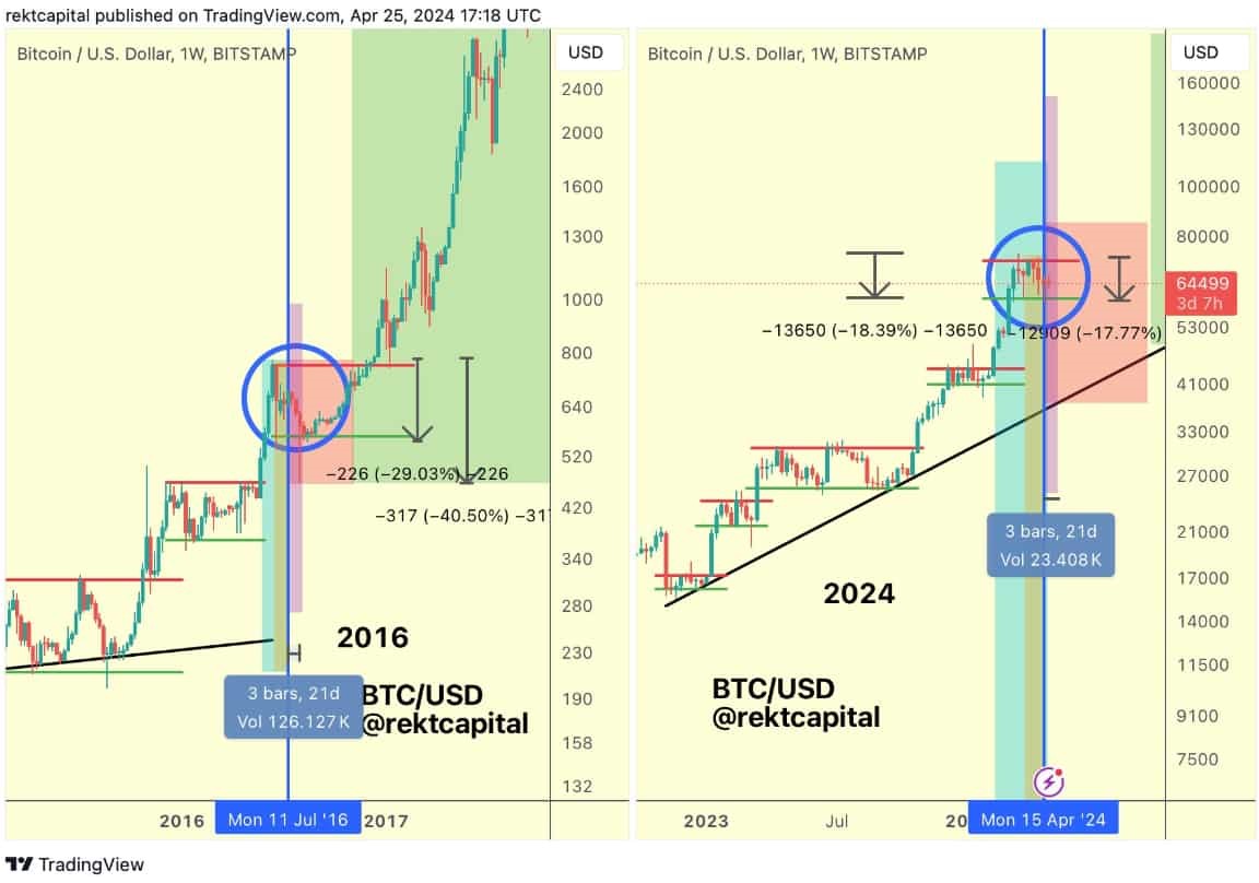 In an X (formerly Twitter) post on April 26, crypto analyst Rekt Capital raised concerns about a potential “Danger Zone” following Bitcoin’s recent halving event.