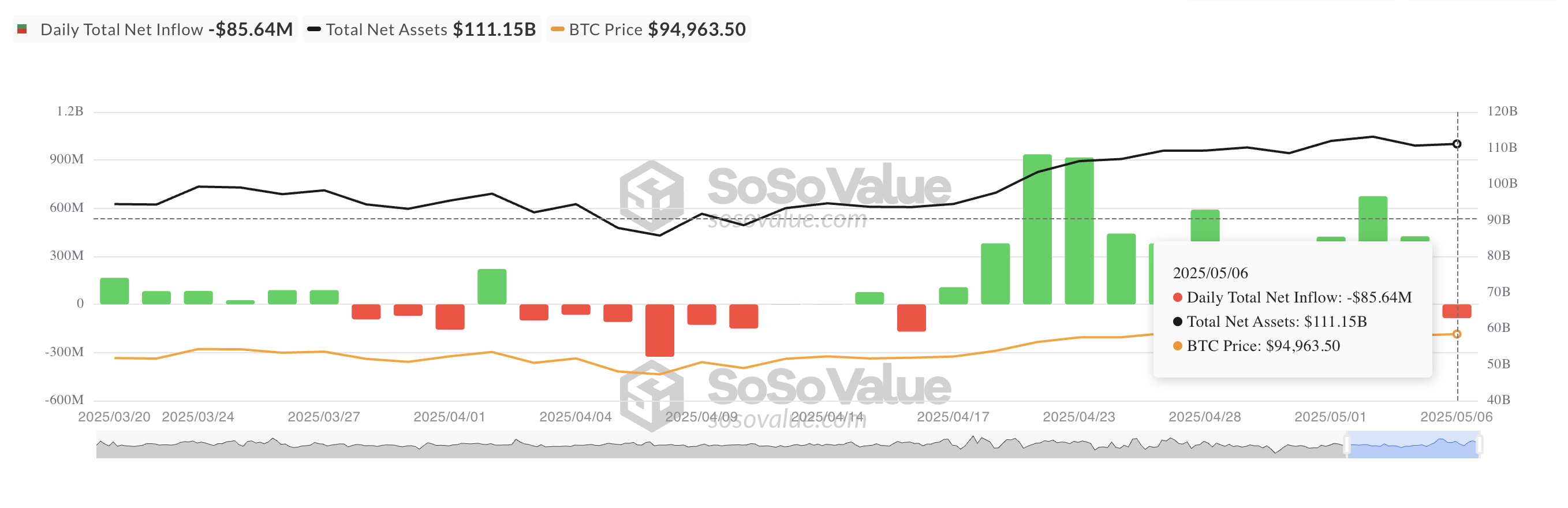 BTC spot ETFs saw net outflows of $85.64 million on Tuesday, marking a shift in sentiment among institutional investors just ahead of today’s US Federal Reserve’s latest policy meeting.