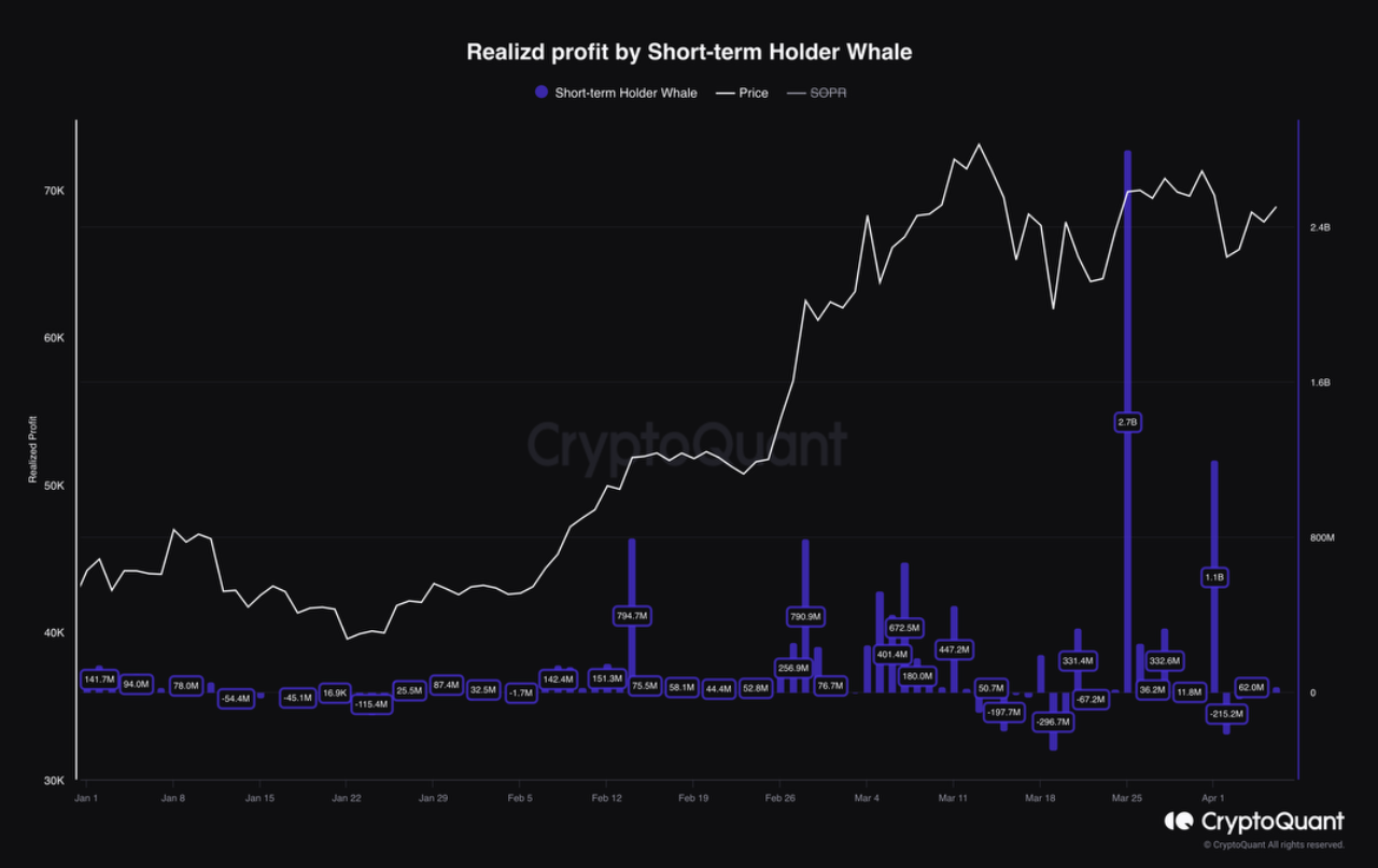 Just three days ago, Bitcoin’s price hovered around the $65.5k mark, sparking conversations about the end of its price correction phase. However, this price level gained buyers’ interest, resulting in a massive accumulation. According to CryptoQuant, the initial spark for this recovery came from the realization of huge profits, amounting to $2.7 billion.