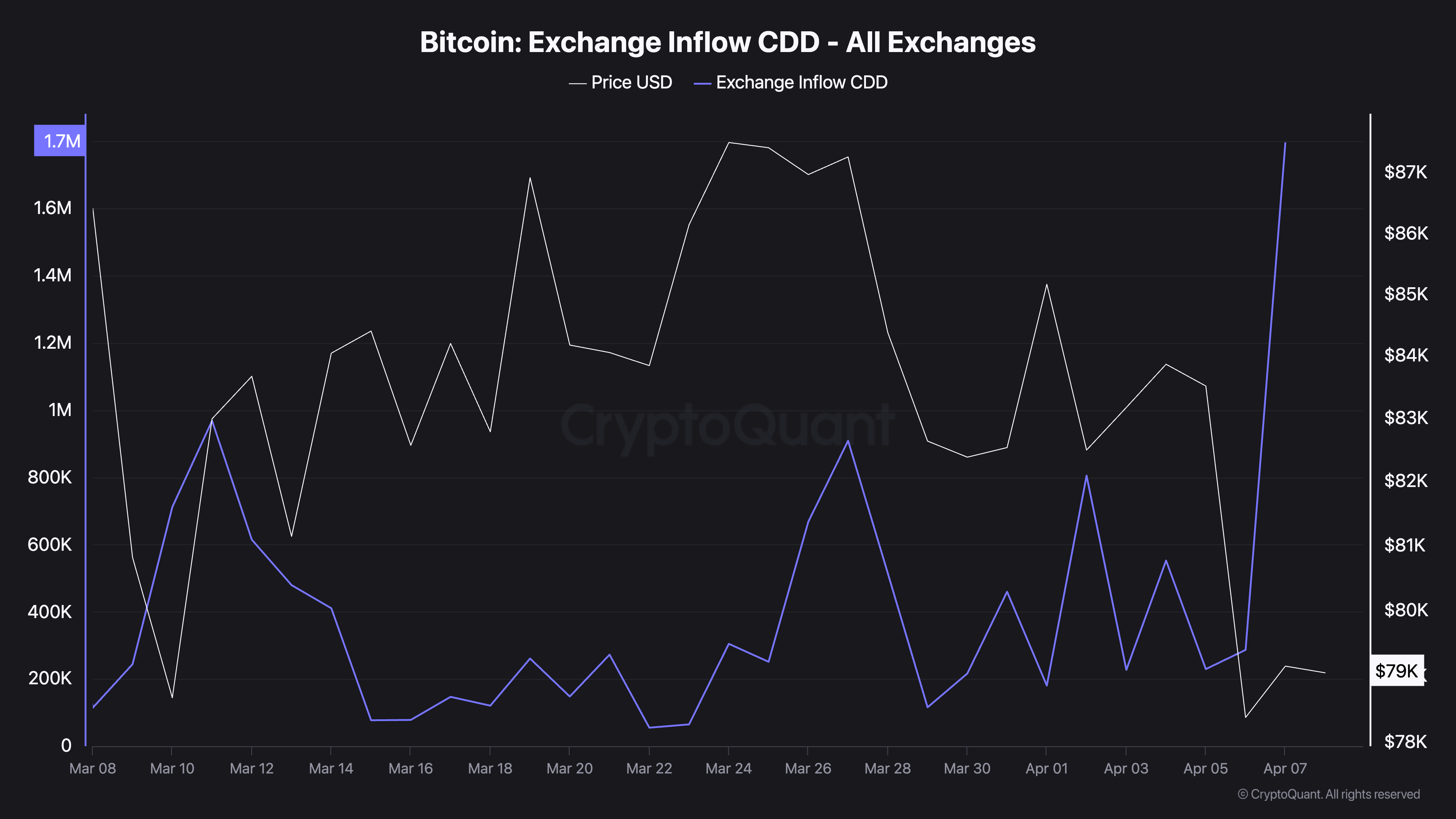 Bitcoin Exchange Inflow CDD. Source: CrytpoQuant