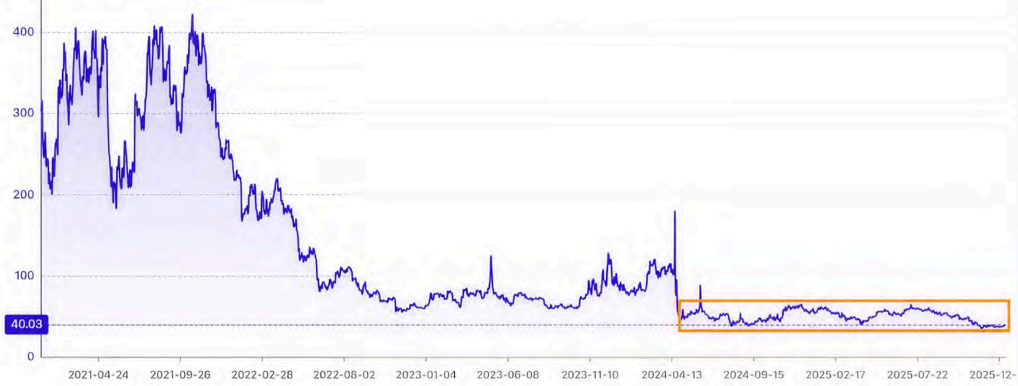 With the block subsidy reduced to 3.125 $BTC, transaction fees failed to offset lost revenue. The report notes that fees made up less than 1% of total block rewards for most of 2025.