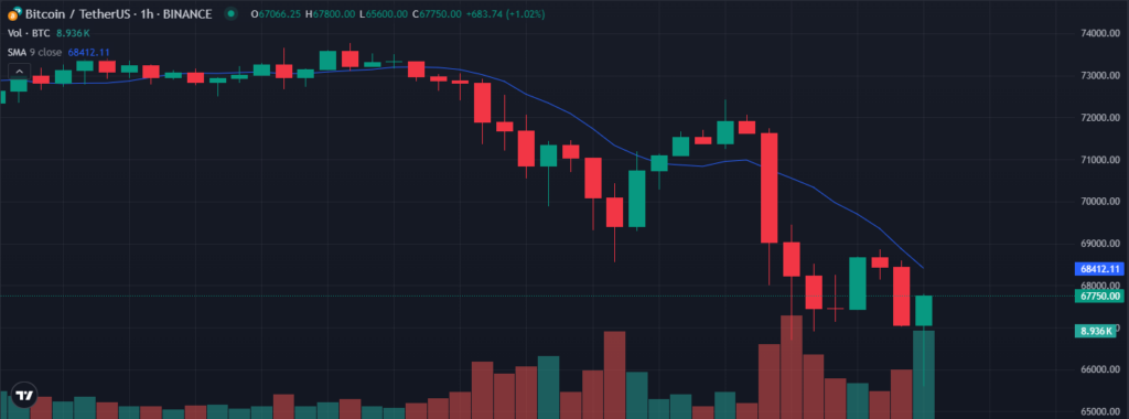 After soaring to new heights, Bitcoin’s (BTC) bullish momentum has hit a snag as the cryptocurrency experiences a significant pullback. Following its record-breaking peak of $73,750 on March 14, Bitcoin displayed a sharp decline, plunging to $65,630, marking a 12.3% drop.
