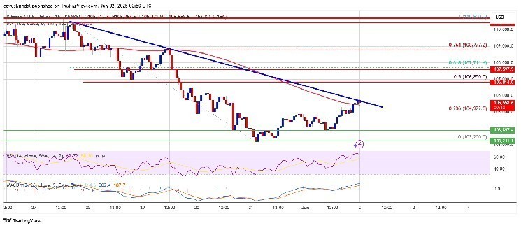 Bitcoin price started a fresh decline and tested the $103,200 zone. BTC is now consolidating and might aim for a recovery wave above $106,000.