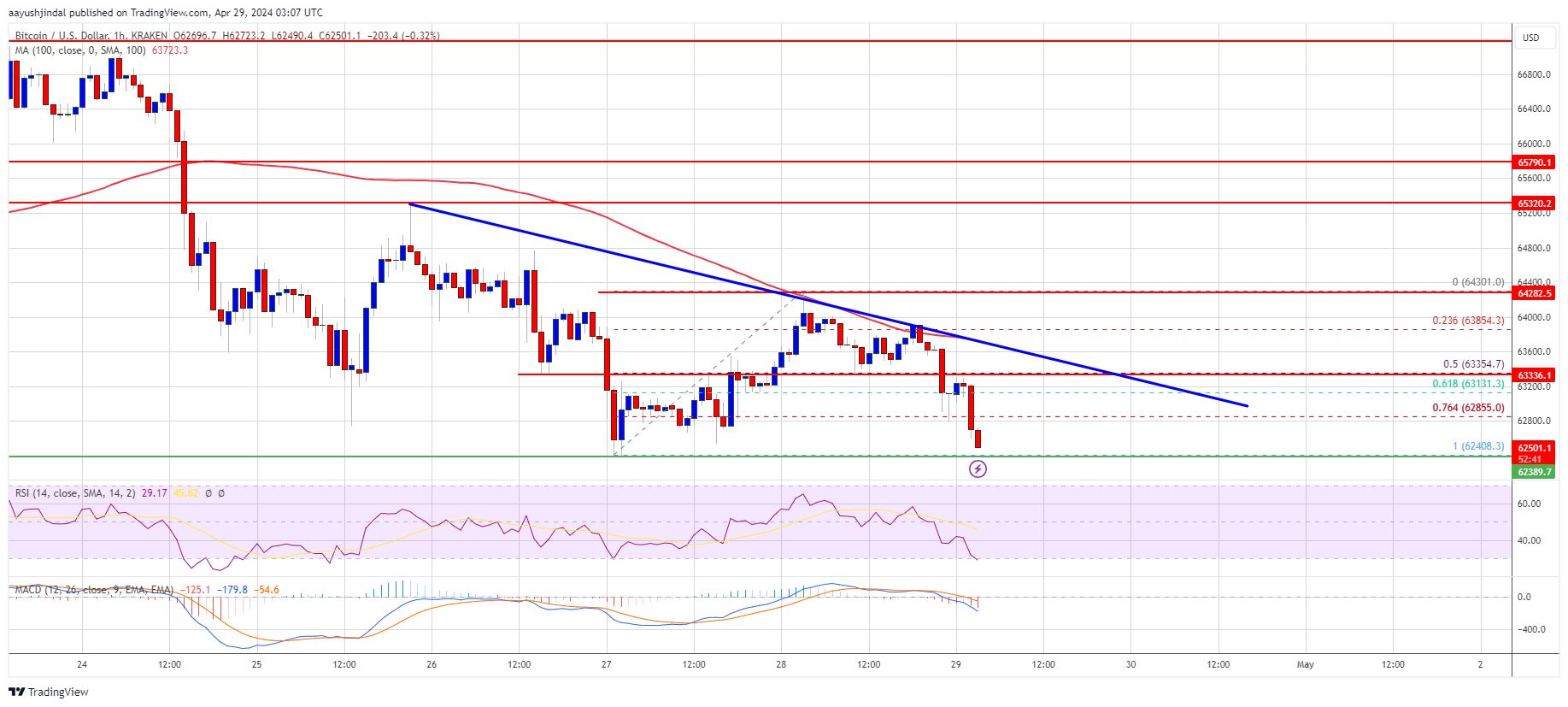 Major Support Levels – $62,400, followed by $62,000.