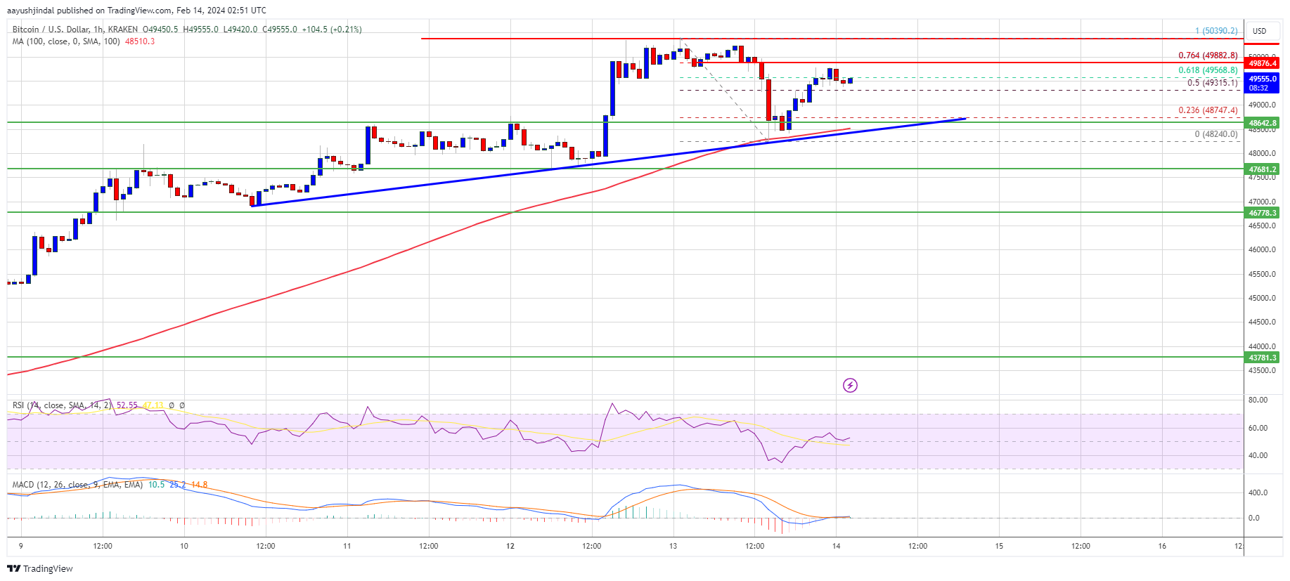 Bitcoin price started a downside correction from the $50,400 zone. BTC tested $48,250 and is currently attempting a fresh increase above $50,000.