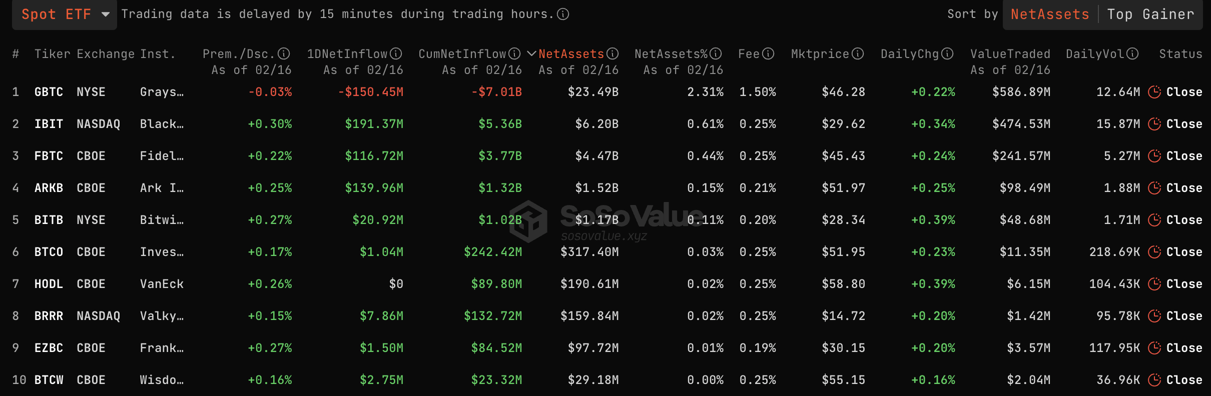Bitcoin ETFs data | SoSoValue