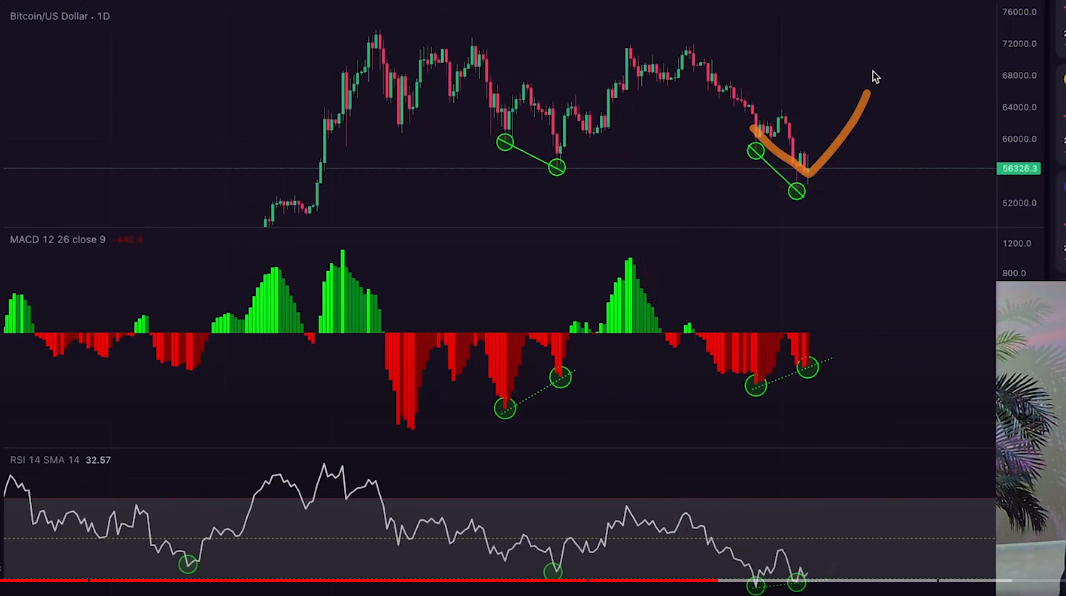 According to Svenson, Bitcoin is showing bullish divergence on the daily time frame on two momentum oscillator indicators – the Relative Strength Index (RSI) and the Moving Average Convergence/Divergence (MACD). A bullish divergence, which suggests a potential reversal to the upside, occurs when the price of an asset records lower lows while the indicators are witnessing higher lows.