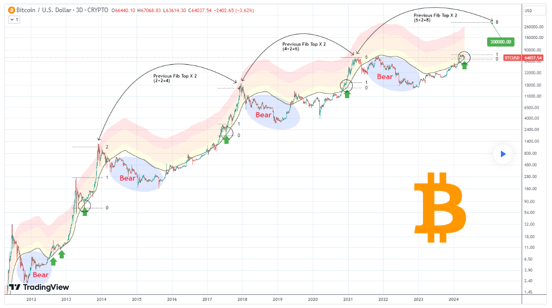 Based on this analysis, TradingShot suggested that the upcoming cycle four could follow a similar pattern, potentially extending by two Fibonacci levels beyond the previous cycle. Applying this projection to current trends, a target price of $300,000 emerges, representing a substantial leap from current levels. The target represents a growth of over 360%.