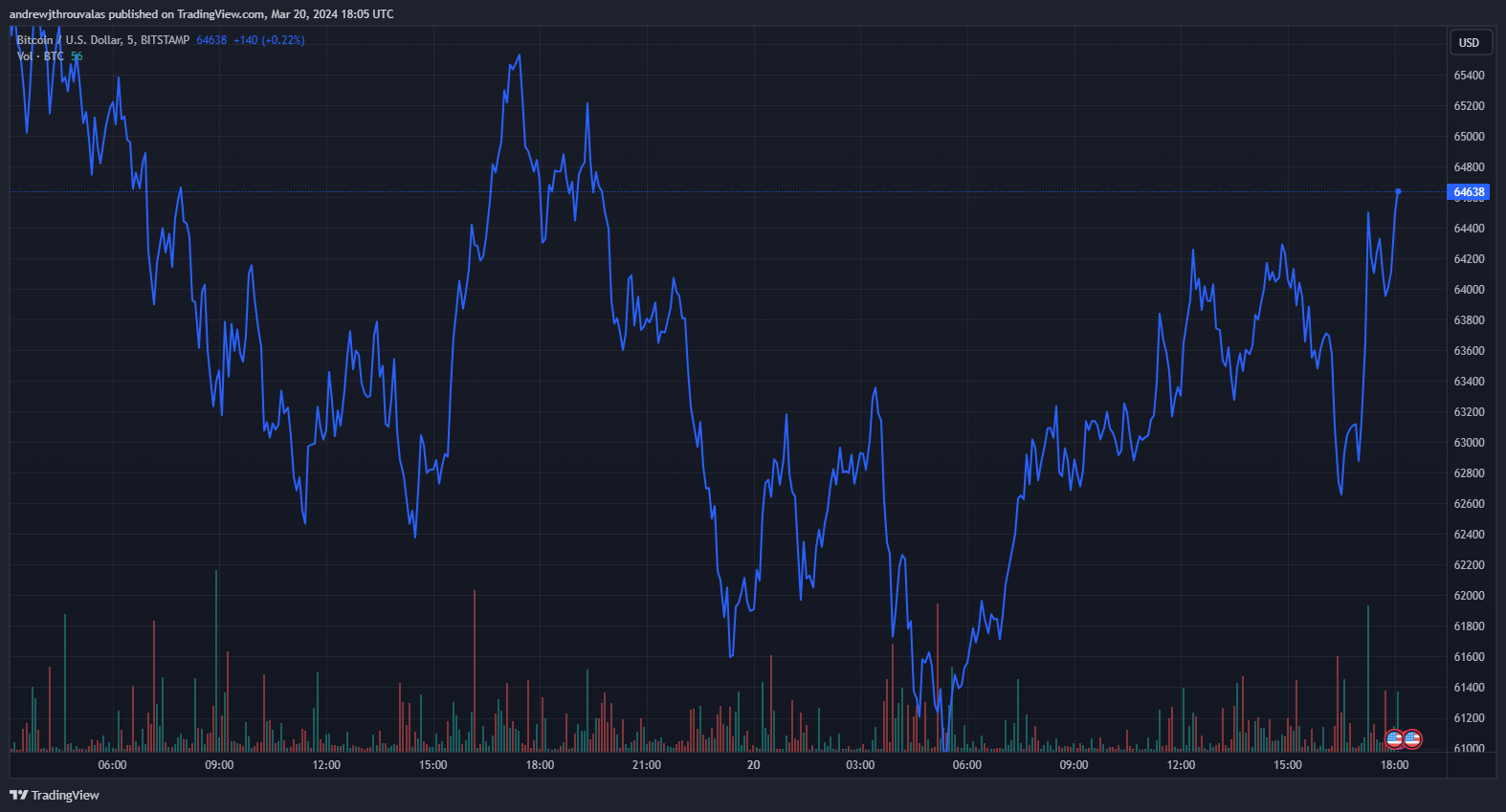 - Bitcoin traded for $62,000 one hour before the announcement, before shooting to $64,600 as the updated benchmark rate was revealed.