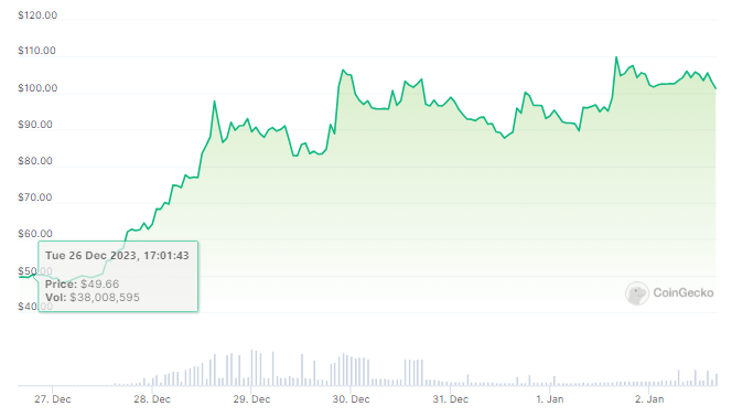 As of this writing, Coingecko statistics indicates that BSV was trading at $102.87, up 7.3% and 109.1% over the previous day and week, respectively.