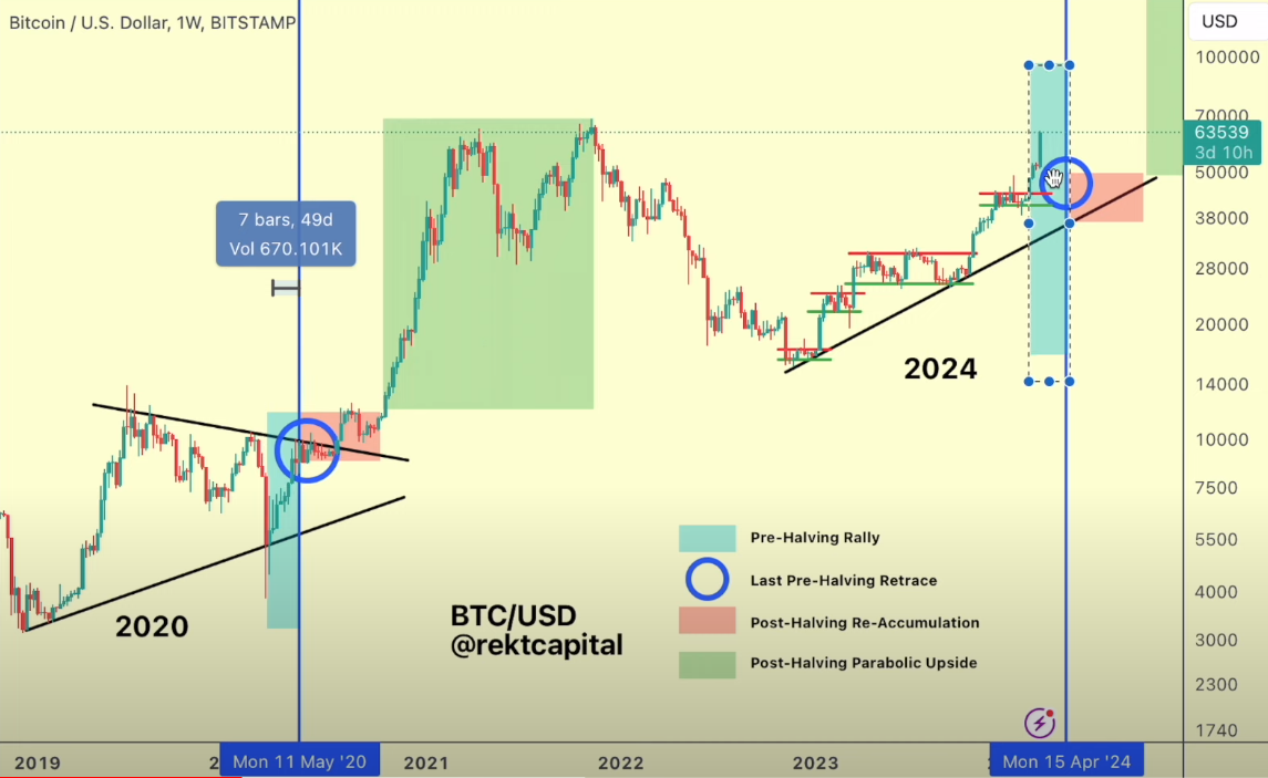 According to Rekt Capital, Bitcoin possesses more upside potential ahead of the halving.