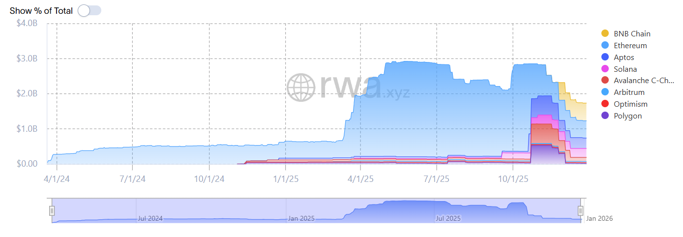 At its peak in October, BUIDL held more than $2.8 billion in assets. Source: RWA.xyz