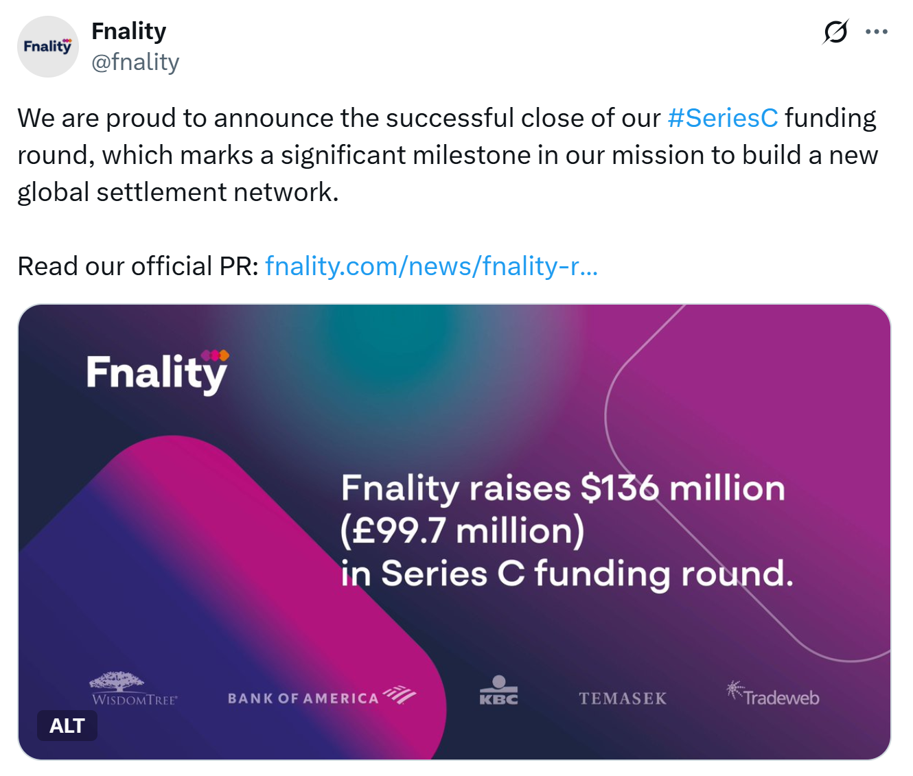 Fnality raises $136 million. Source: Fnality